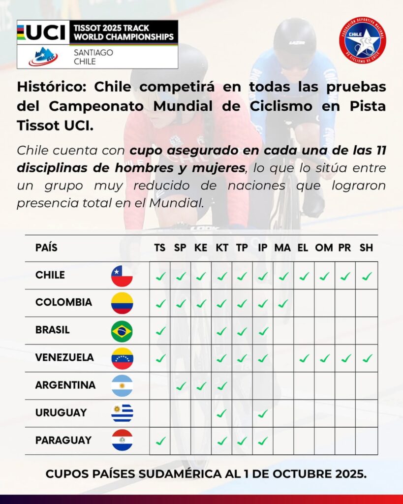 El Mundial de Pista Tissot UCI 2025 no solo será el evento deportivo más importante organizado por Chile en los últimos años; también es la ocasión para que el país se muestre como una nación capaz de organizar, competir y proyectar deportistas al más alto nivel.