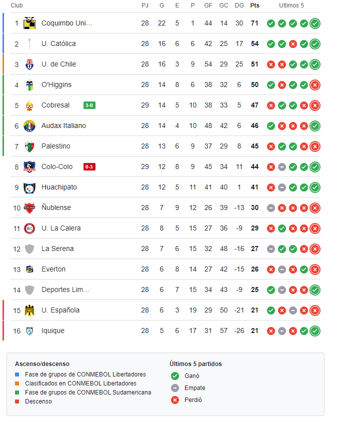 El marcador 3×0 para Cobresal deja a los albos fuera de zona de clasificación internacional de cara a la última fecha, mientras Cobresal consolida una victoria clave ante su gente y estira la incertidumbre en la lucha por los cupos a torneos continentales.